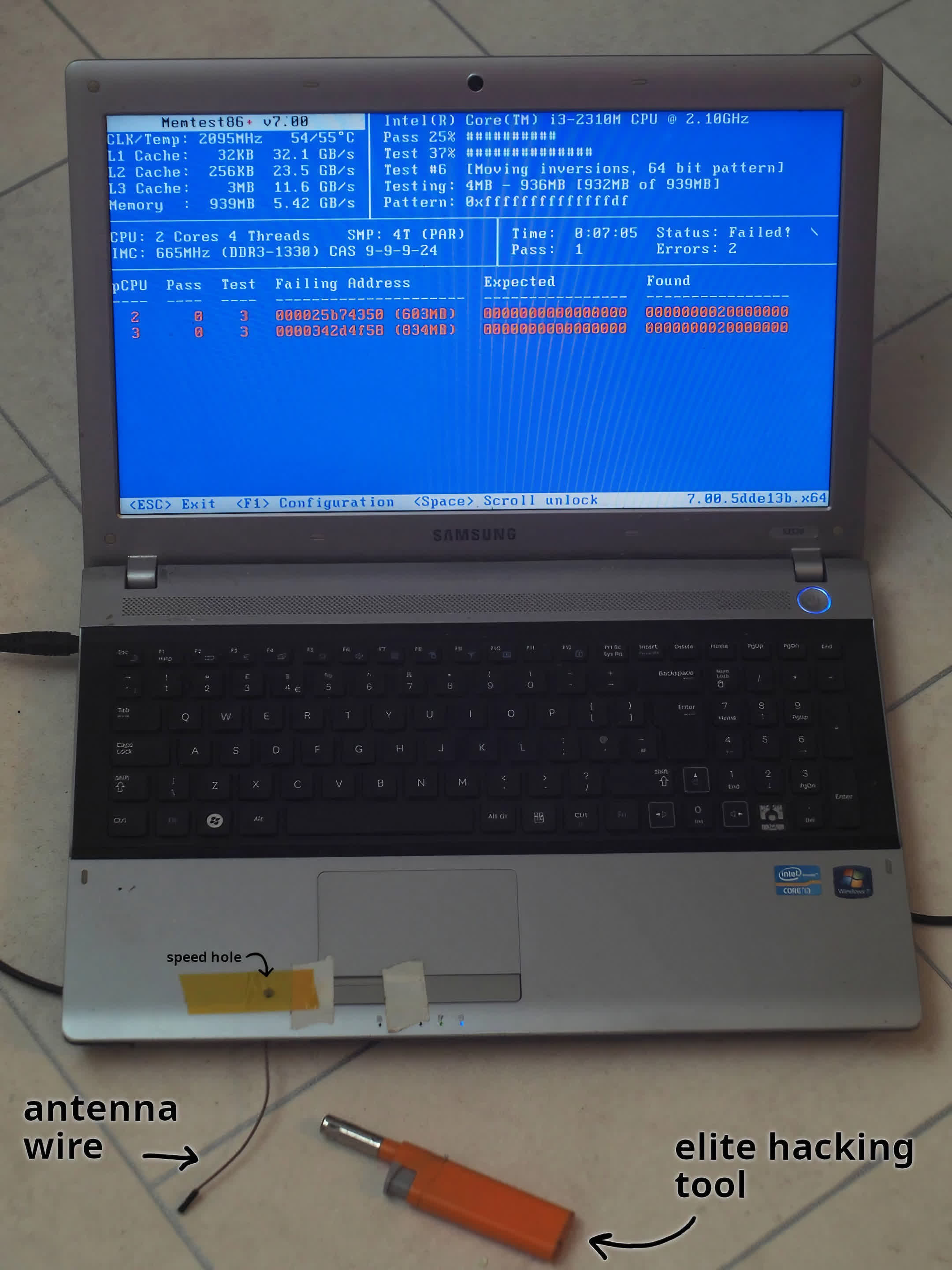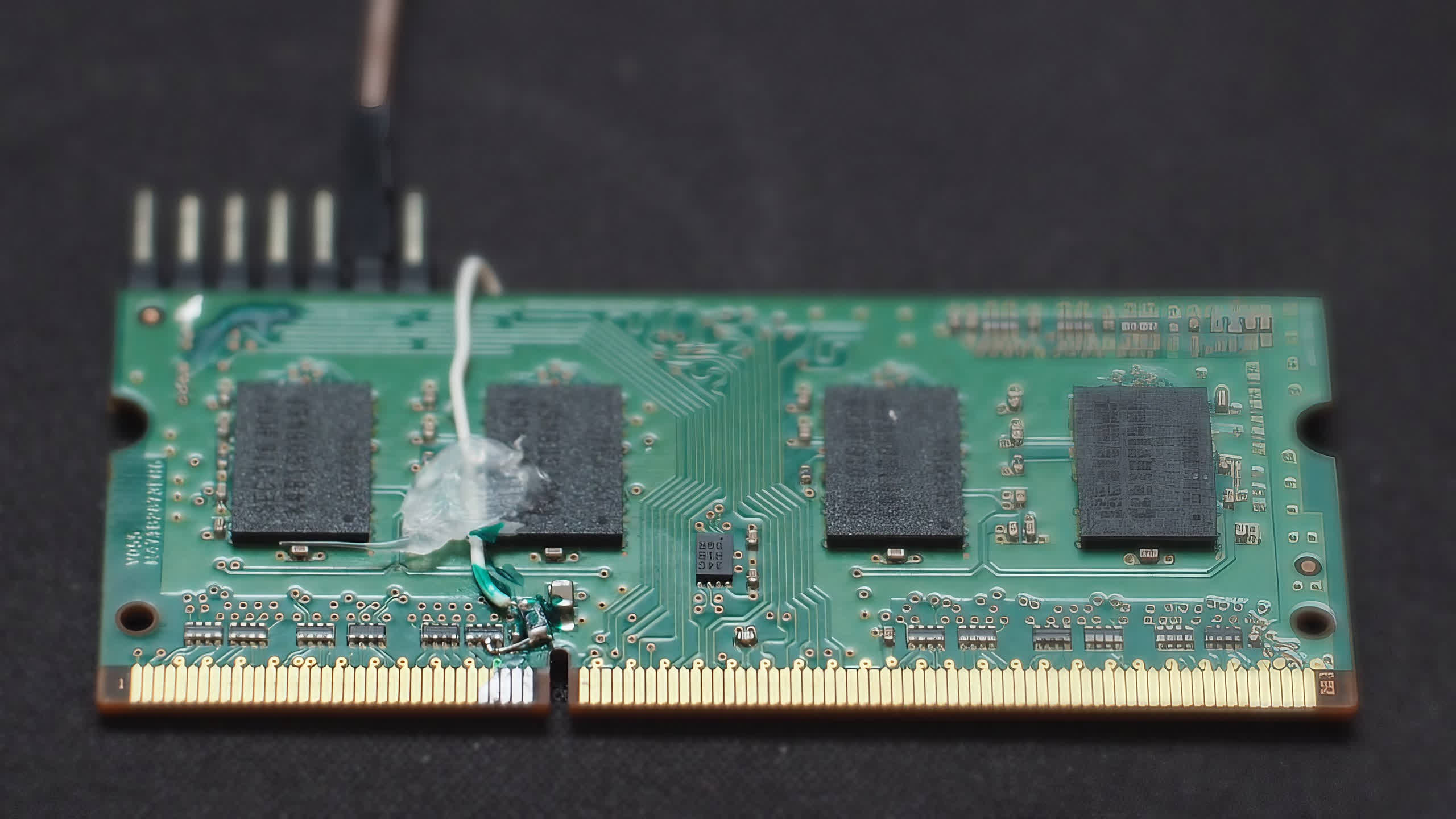 The method involves a hard DRAM mod, soldering a tiny 15-ohm resistor, and wiring an "antenna" to specific pins on the laptop's memory module. He also strategically loaded the system's memory with exploitable page tables to increase his chances of a successful hack and corrupt the memory address mappings.